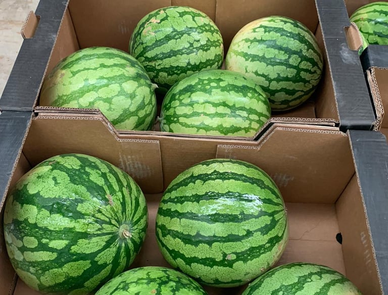 Sandías seleccionadas una a una, dulces, jugosas y de excelente calibre, ideales para distribución mayorista y consumo directo.